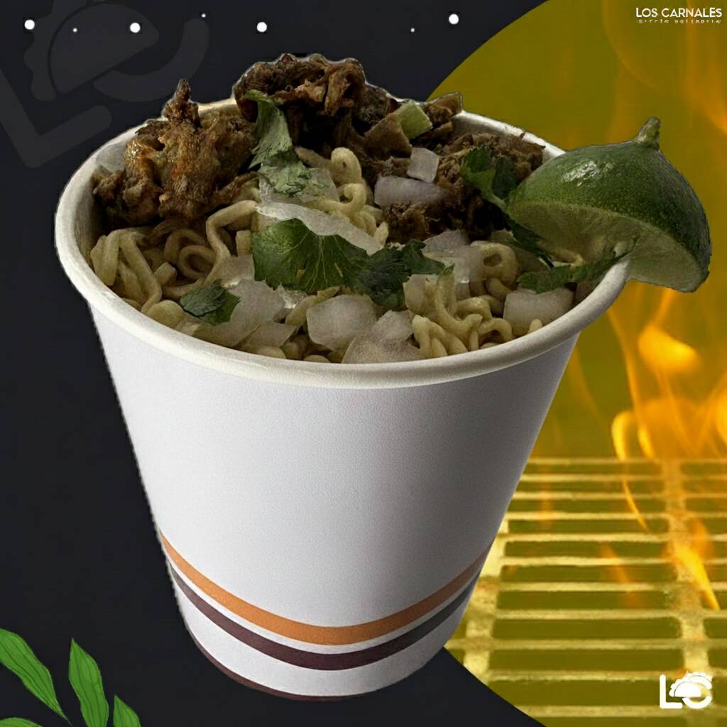 Fideos tipo ramen en caldo de birria intenso y especiado, ideal para quienes buscan todo el sabor sin carne. Calientito, aromático y perfecto para reconfortar. Incluye cilantro, cebolla y limón (sopa estilo ramen la marca y el sabor de la sopa puede variar)