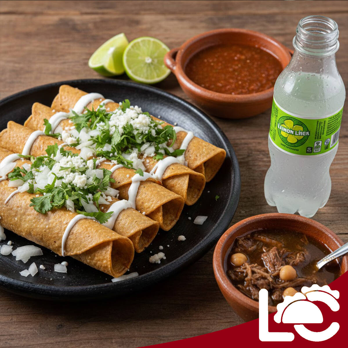 combo flautas de birria + consomé + refresco
