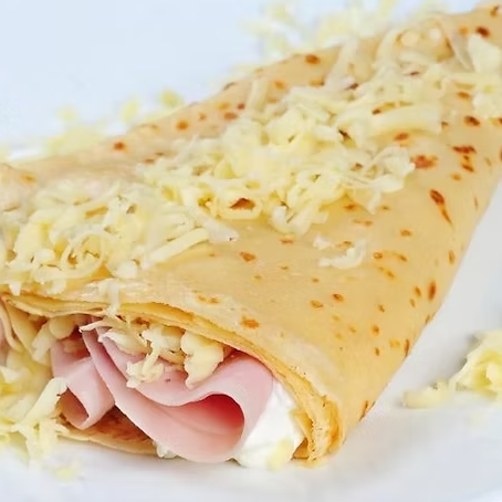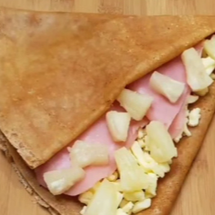 Crepa salada, acompañada de jamon, piña, queso manchego, salsa Valentina , salsa chimichurri.