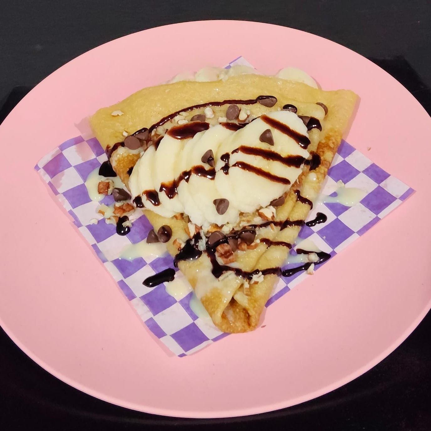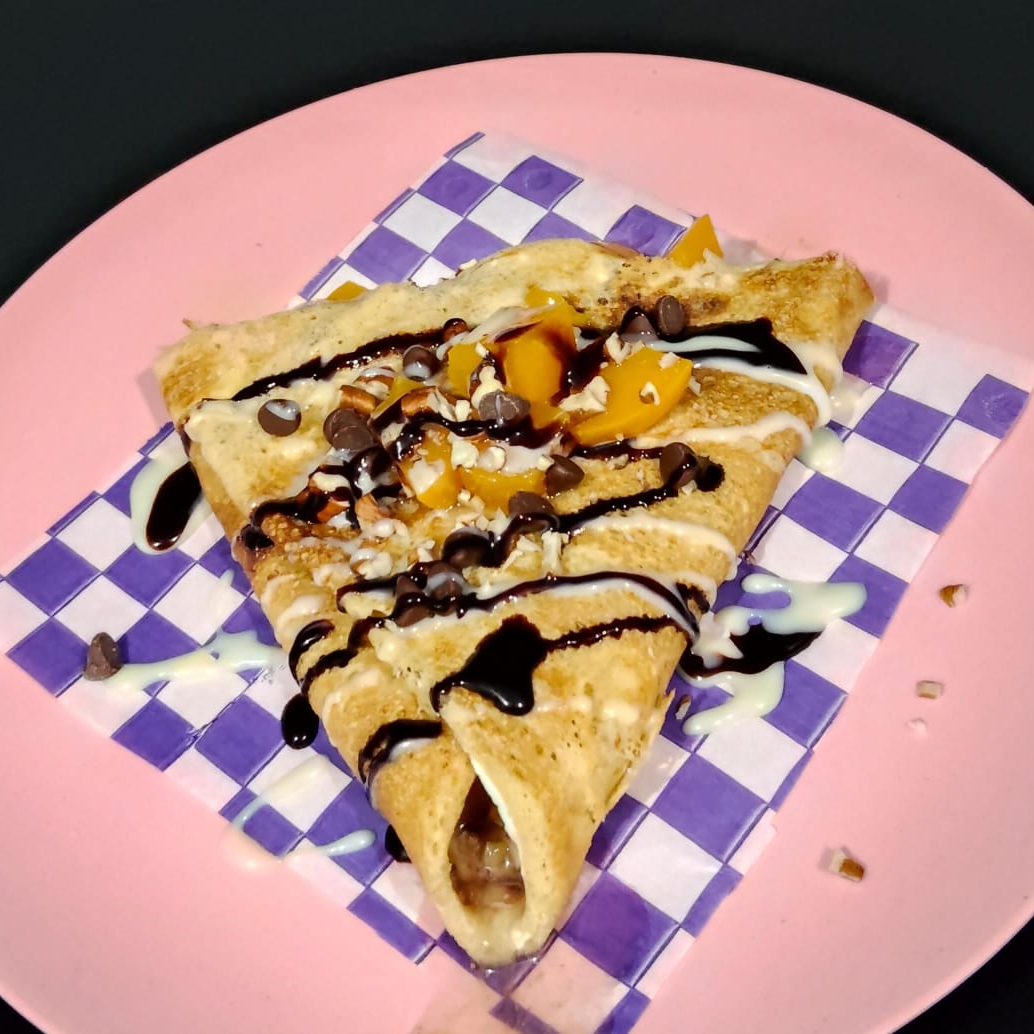 Crepa de Piña, acompañado con queso Filadelfia, Nutella, nuez.