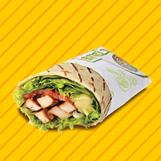 Wrap de pollo bañado en salsa BBQ con queso manchego, cebolla, tomate y lechuga.