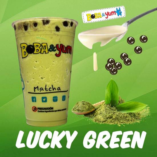 Bebida a base de leche 16 oz, tapioca X1, con lechera y té matcha.