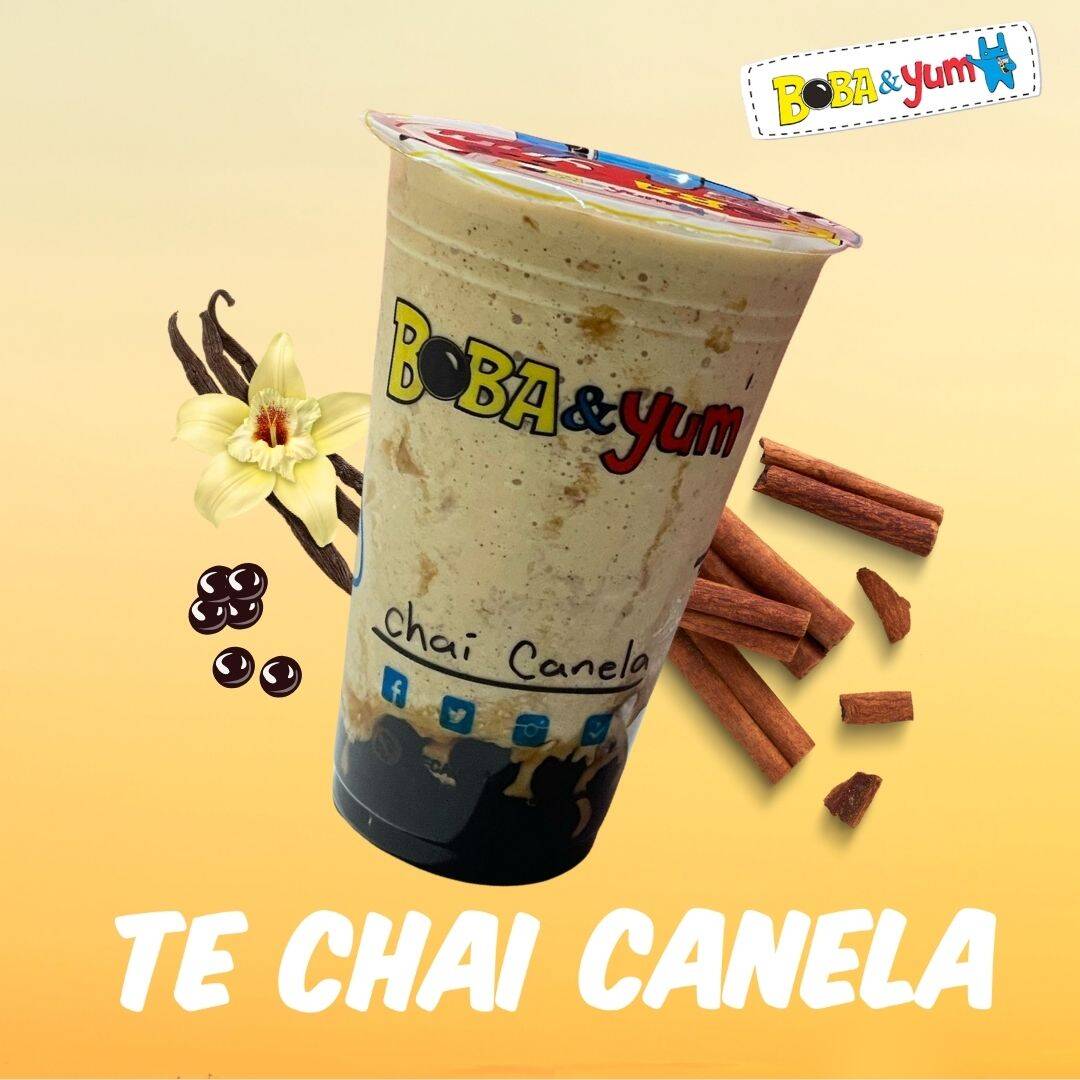 Bebida a base de leche 16oz, tapioca x1, con té chai vainilla y canela molida.