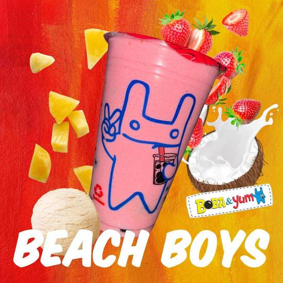 Bebida a base de agua 16 oz, tapioca X1, con jugo de piña, fresa, lechera, coco, plátano y helado de vainilla.