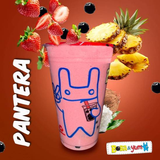 Bebida a base de yogurt 16 oz, tapioca X1, con fresa, frambuesa, mora azul y plátano.
