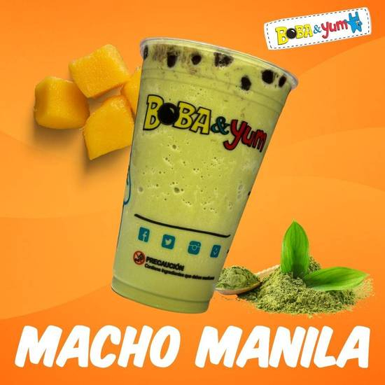 Bebida a base de yogurt 16 oz, tapioca X1, con té matcha y mango.