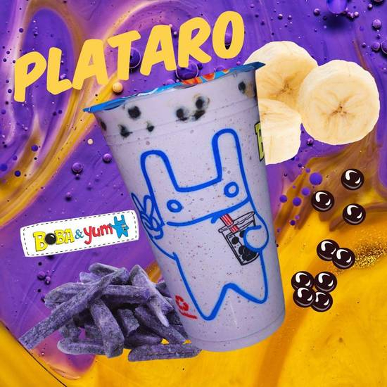 Bebida a base de leche 16 oz, tapioca X1, con plátano y taro.