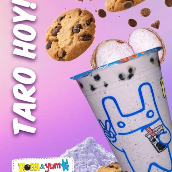 Bebida a base de leche 16 oz, tapioca X1, con galletas Chips A hoy y taro.