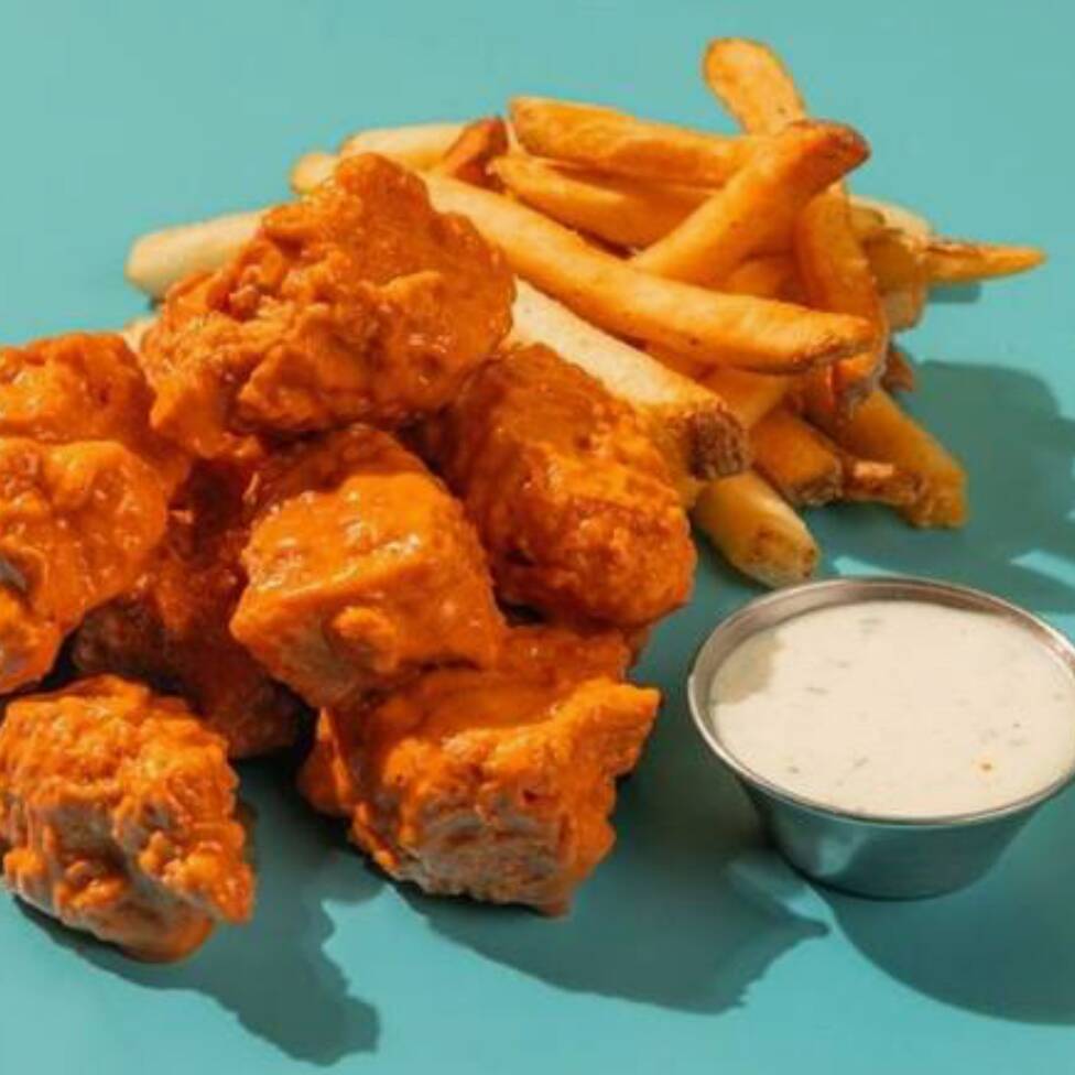 750 g de boneless doraditos por fuera y jugosos por dentro, servidos con papas crujientes, bastones de apio y 2 salsas a elegir, desde suaves hasta atrevidas. 🔥 Cada bocado rebosa sabor y te deja con ganas de más.