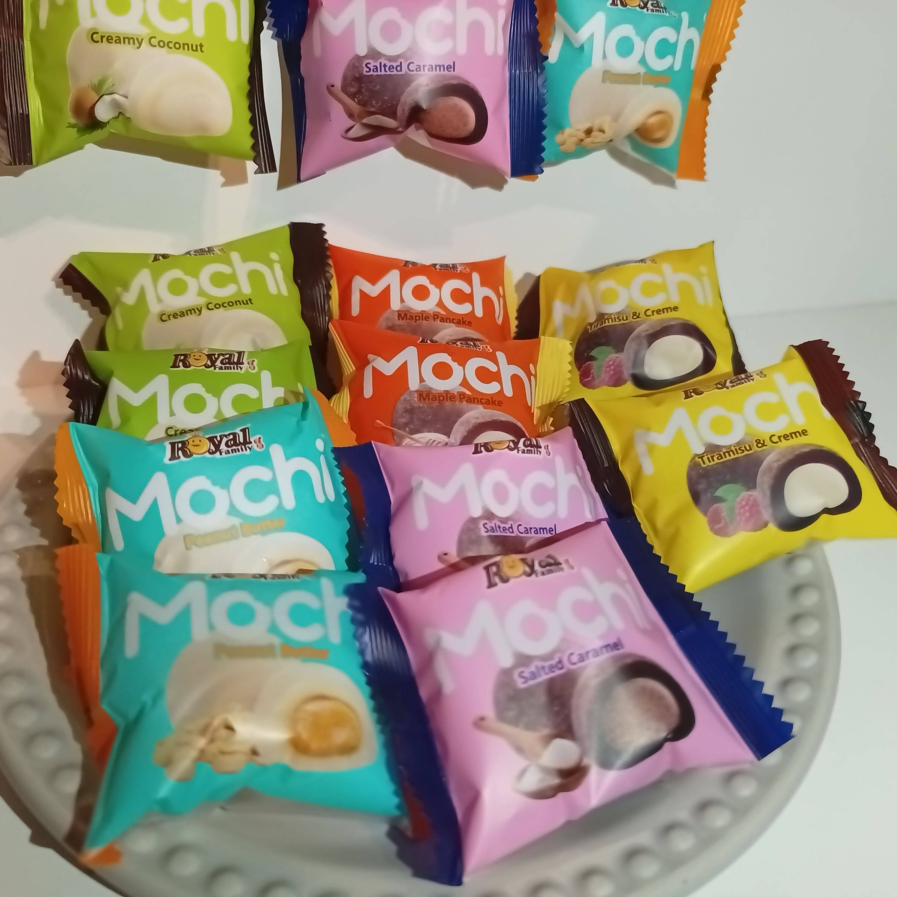 Pastelitos de Arroz típicos de Japón y China con un relleno sabor tiramisú, crema de coco, crema de mani, caramelo, maple Precio incluye 1 solo mochi