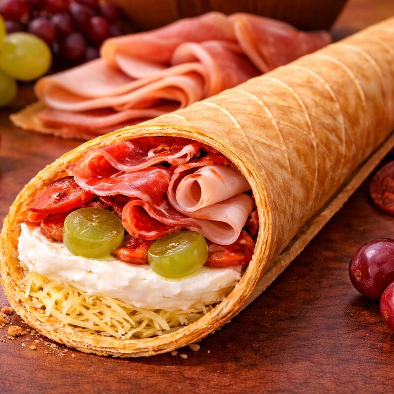 Jamón Serrano, Jamón de Pavo, Peperoni, Philadelphia y Uva