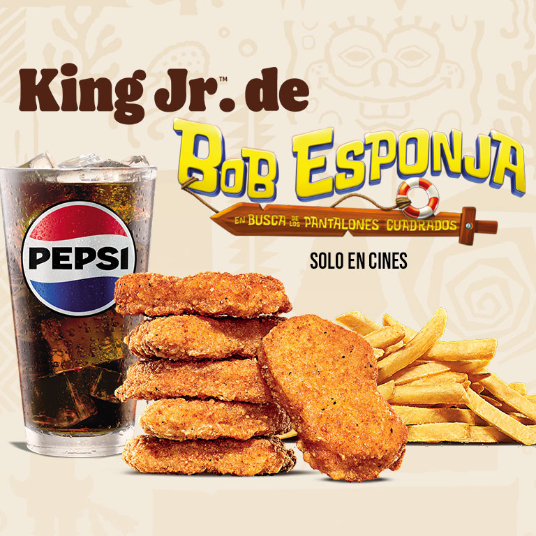 El antojo que todo Rey necesita. Elige entre hamburguesa con queso o 6 nuggets + papas chicas.