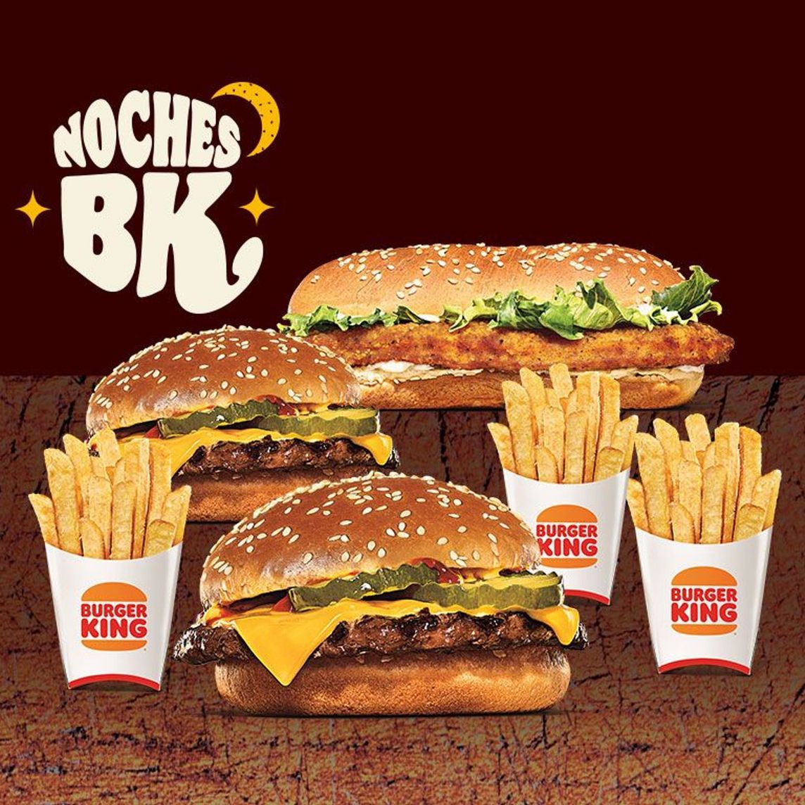 Las noches del Rey son para compartir con: 2 Hamburguesas con queso + 1 King de Pollo + 3 papas chicas.