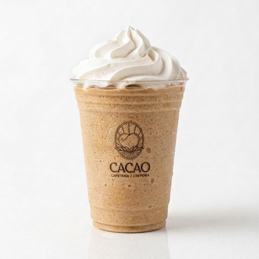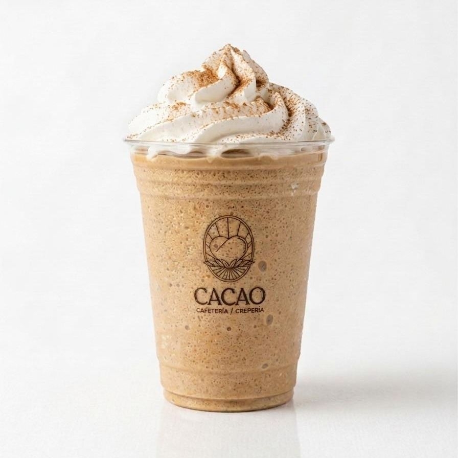 bebida fria sabor café a base de leche, decorada con crema batida.