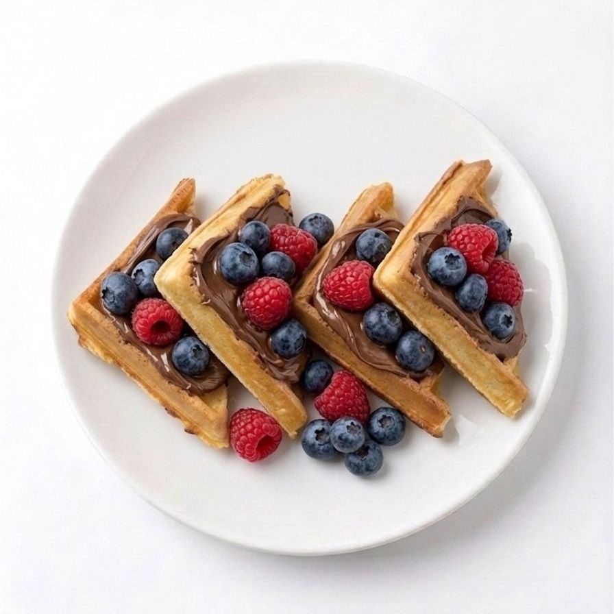 waffle con nutella, blueberry y frambuesa fresacas.