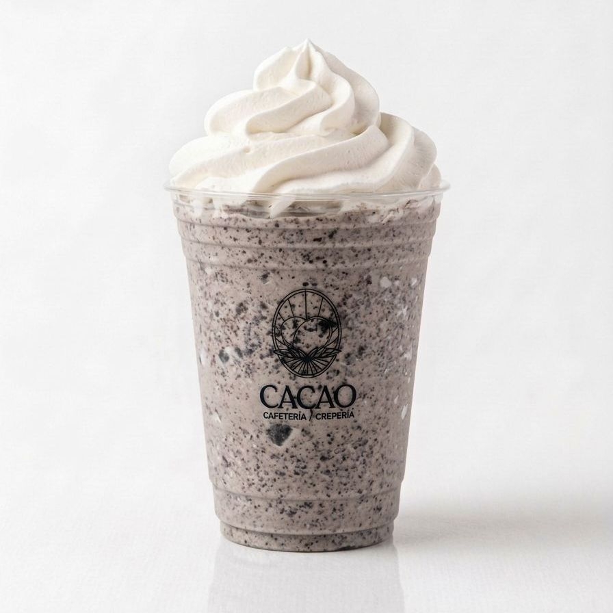 bebida fria sabor helado de galleta oreo a base de leche, decorada con crema batida.