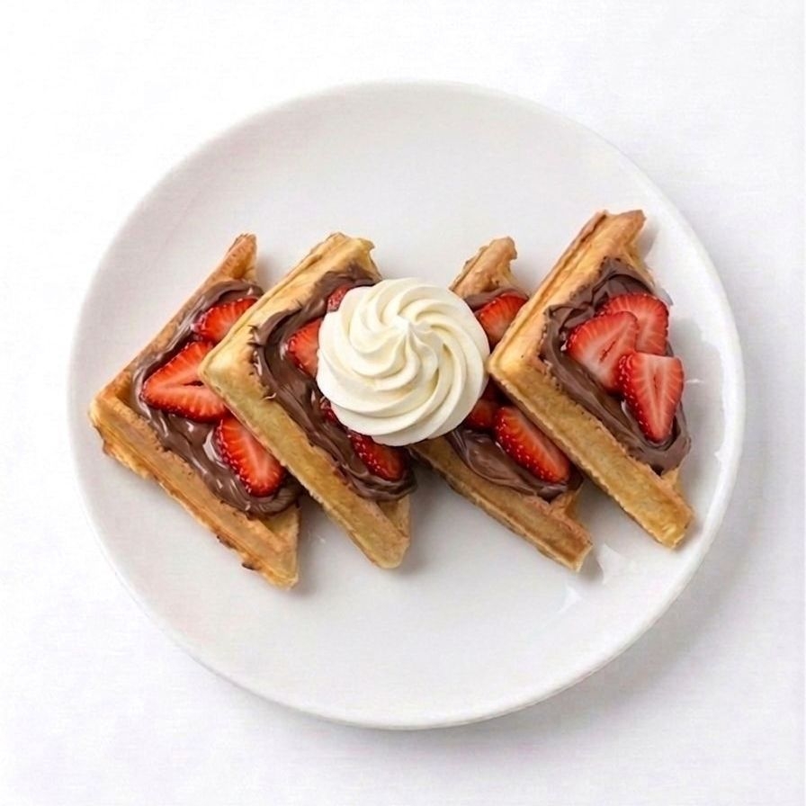 waffle con nutella, chantilly y fresas frescas.