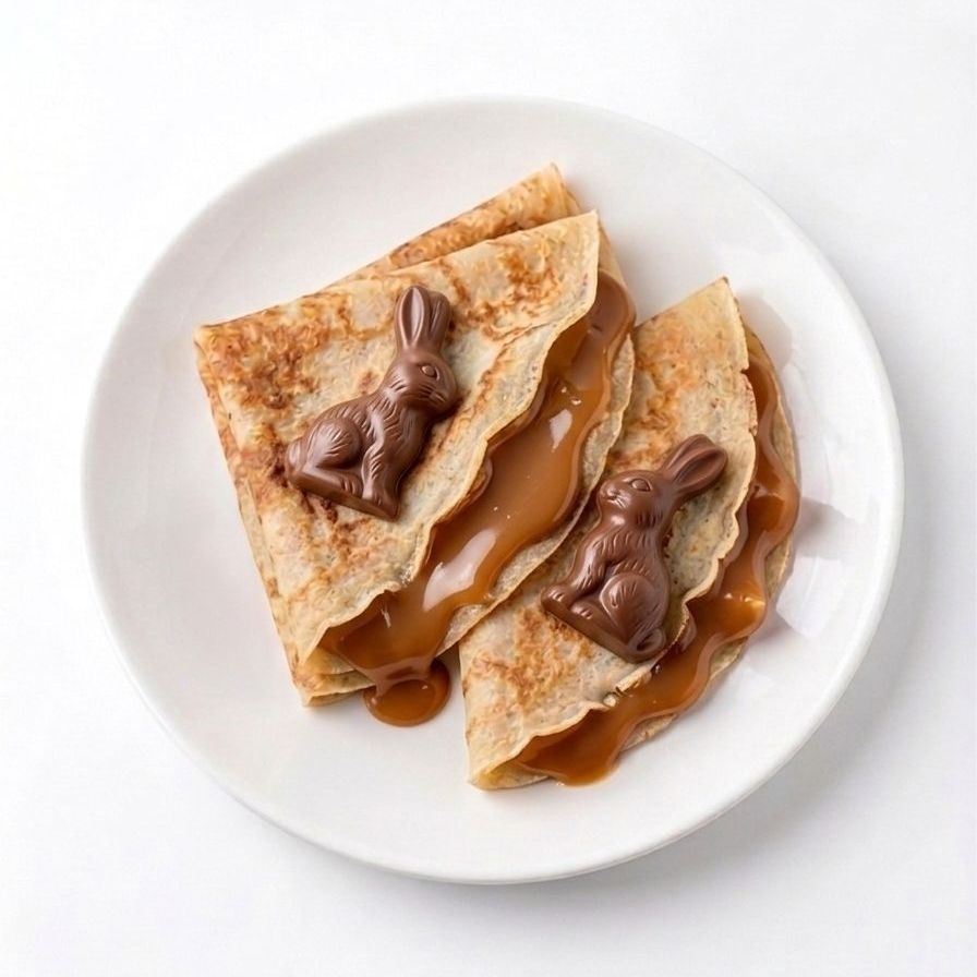 crepa con chocolate turin y dos conejitos turin de decoración.