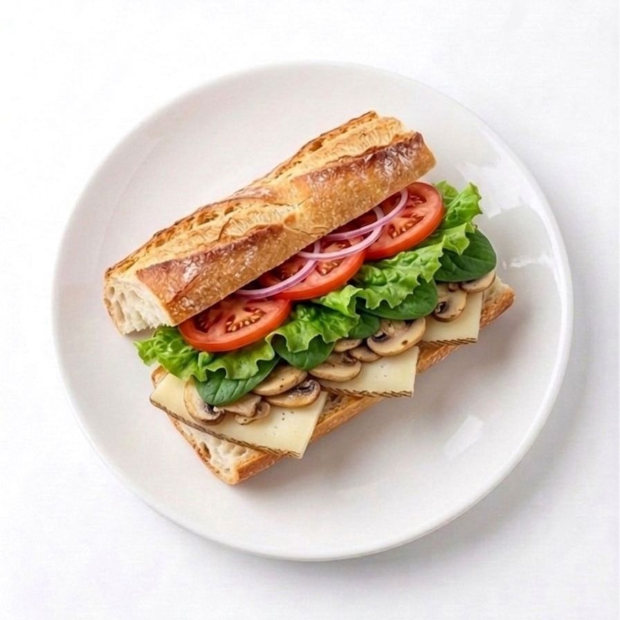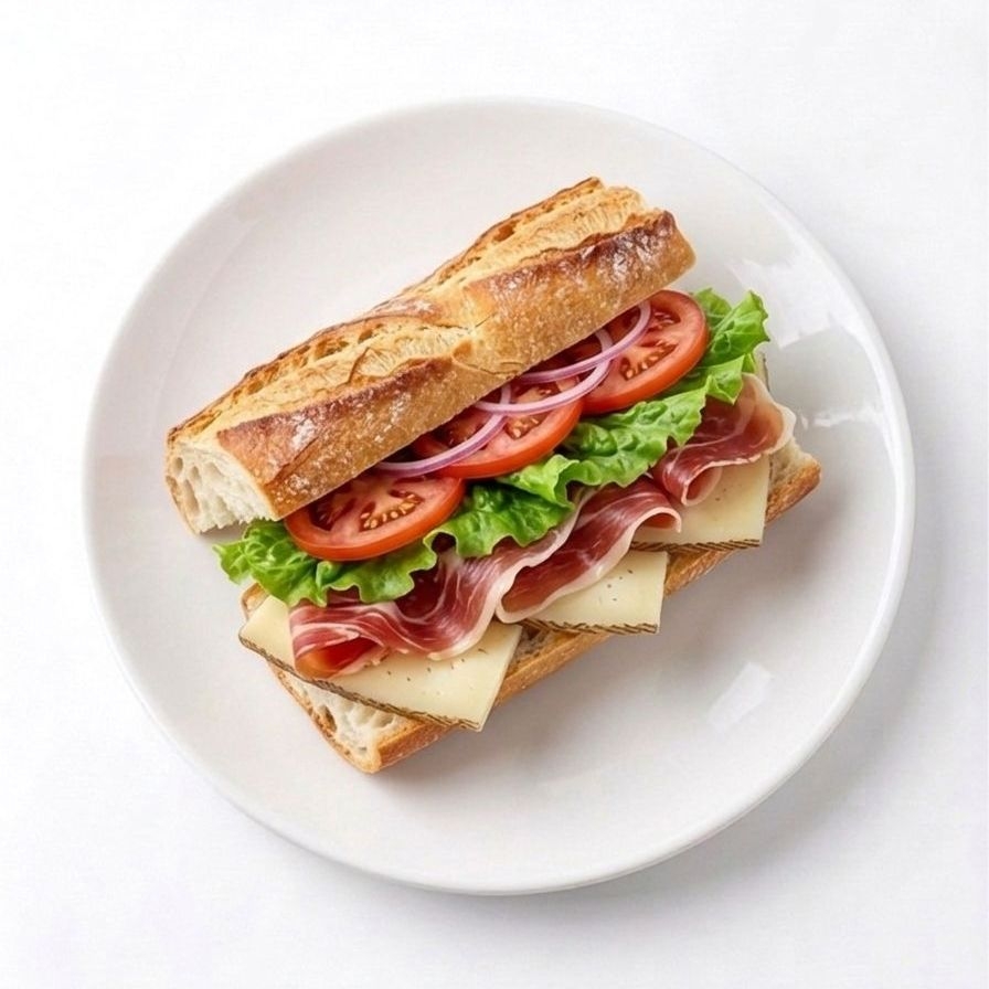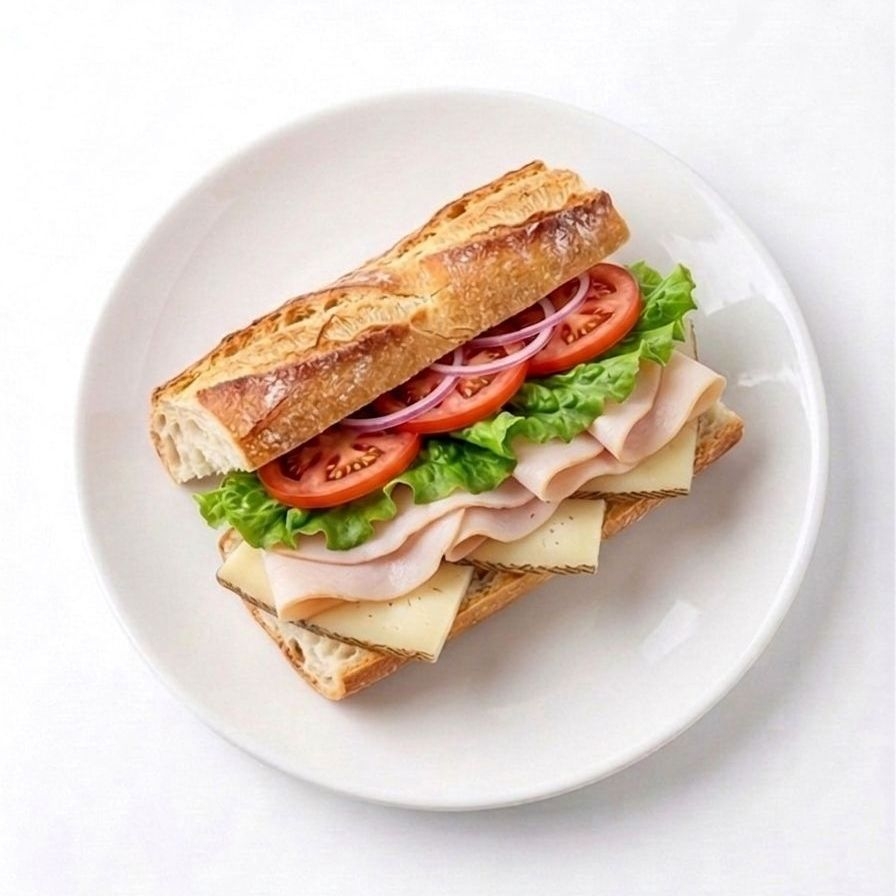 Aderezo, lechuga, jitomate, cebolla morada, jamón de pavo y manchego (15 cm)