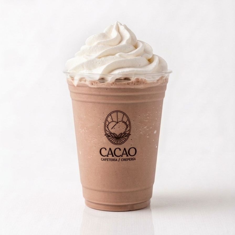 bebida fria sabor helado de chocolate a base de leche, decorada con crema batida.