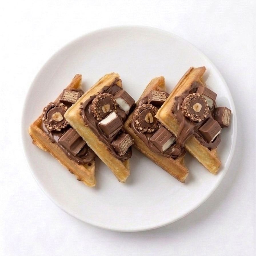 waffle con nutella y chocolates kinder, kitkat y ferrero.