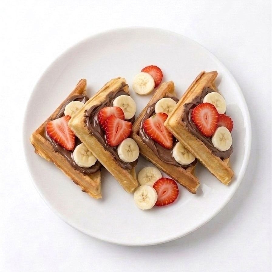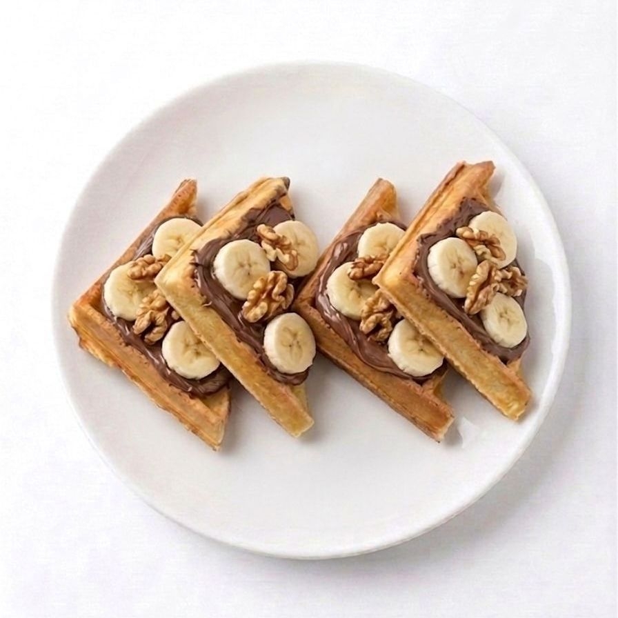 waffle con nutella, platano fresco y trocitos de nueces.