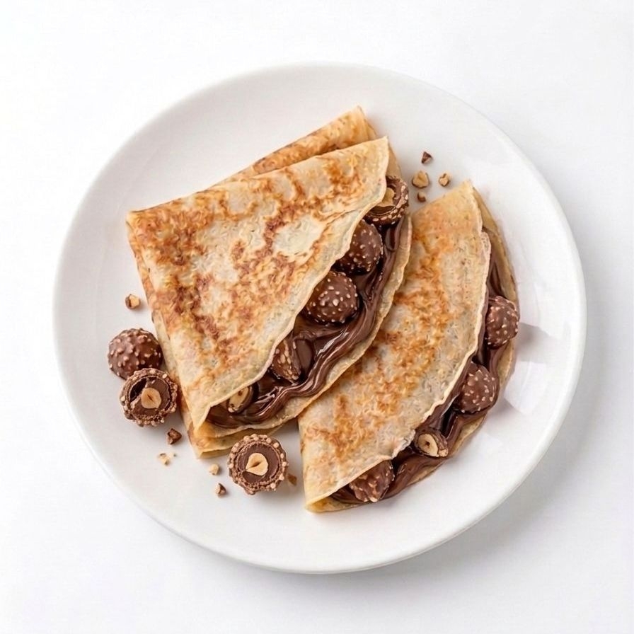 crepa con nutella y 3 piezas de chocolate ferrero.