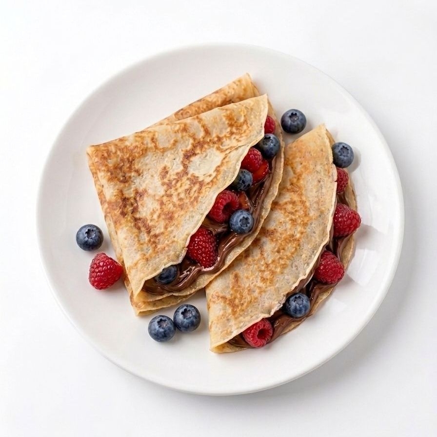 crepa con nutella, frambuesa y blueberry frescas.
