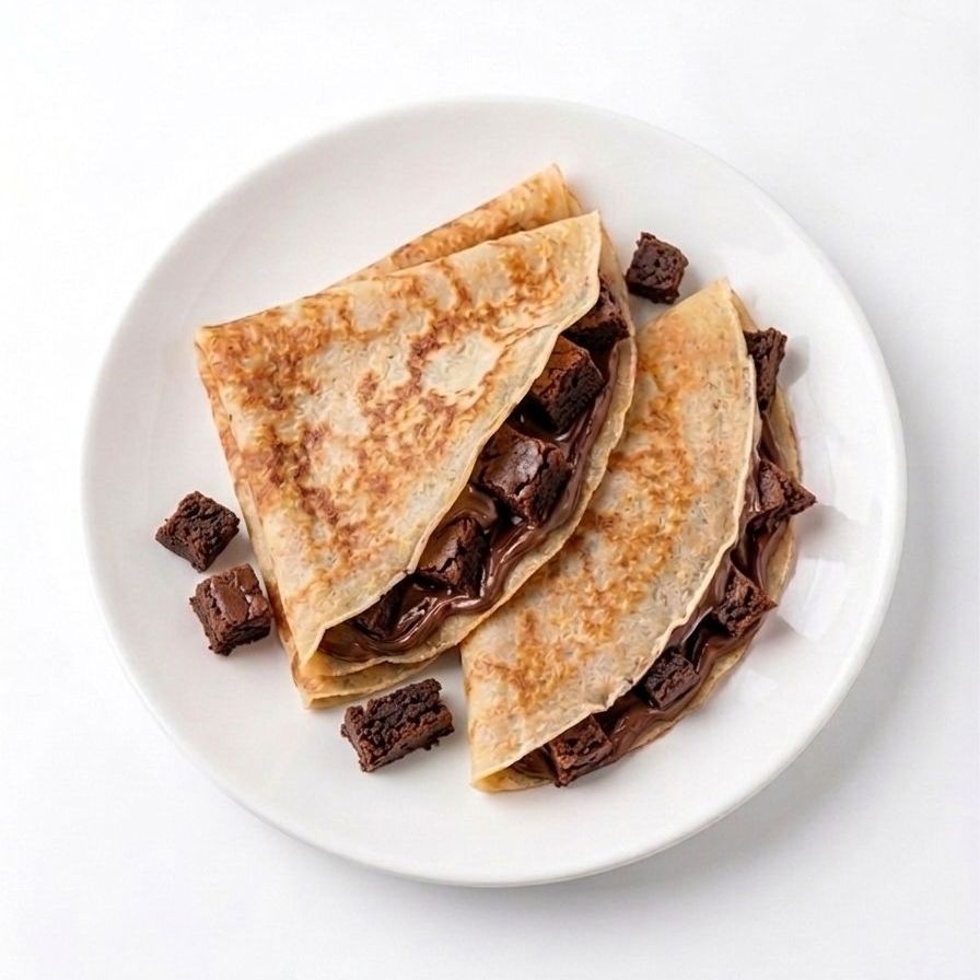 crepa con nutella y trocitos de brownie recien horneado.