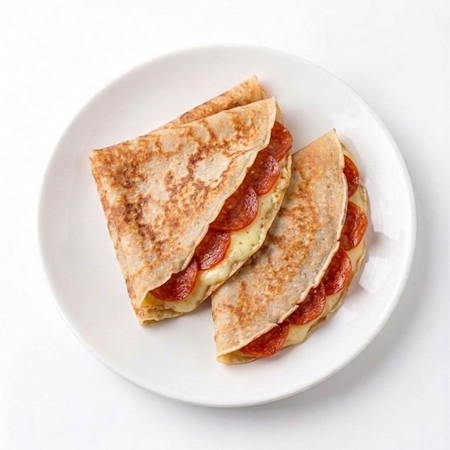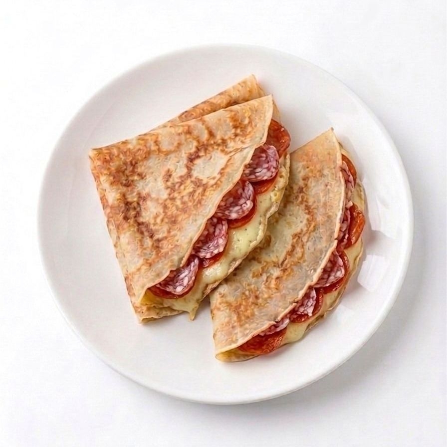 crepa con manchego, pepperoni y salami frescos.