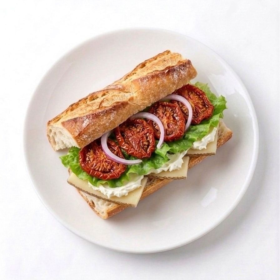 Aderezo, lechuga, jitomate, cebolla morada, philladelphia y manchego (15 cm)