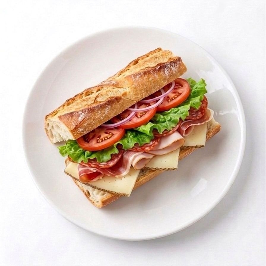 Aderezo, lechuga, jitomate, cebolla morada, jamón de pavo, salami, pepperoni y manchego (15 cm)