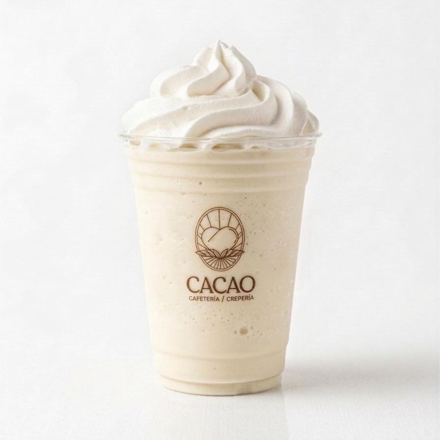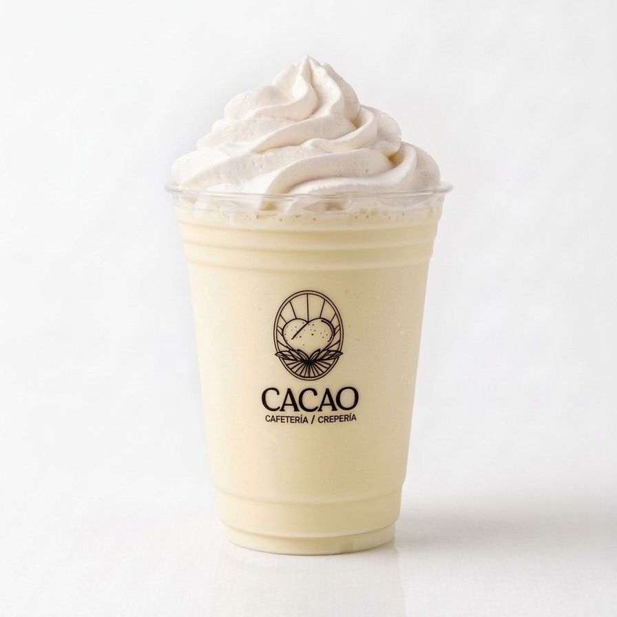 bebida fria sabor vainilla a base de leche, decorada con crema batida.