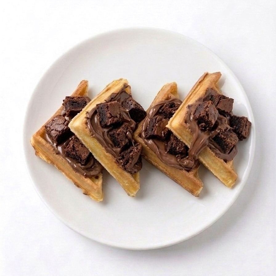 waffle con nutella y trocitos de brownie recien horneado.