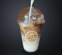Mezcla balanceada de café, leche entera y chocolate blanco enfriada con hielo.