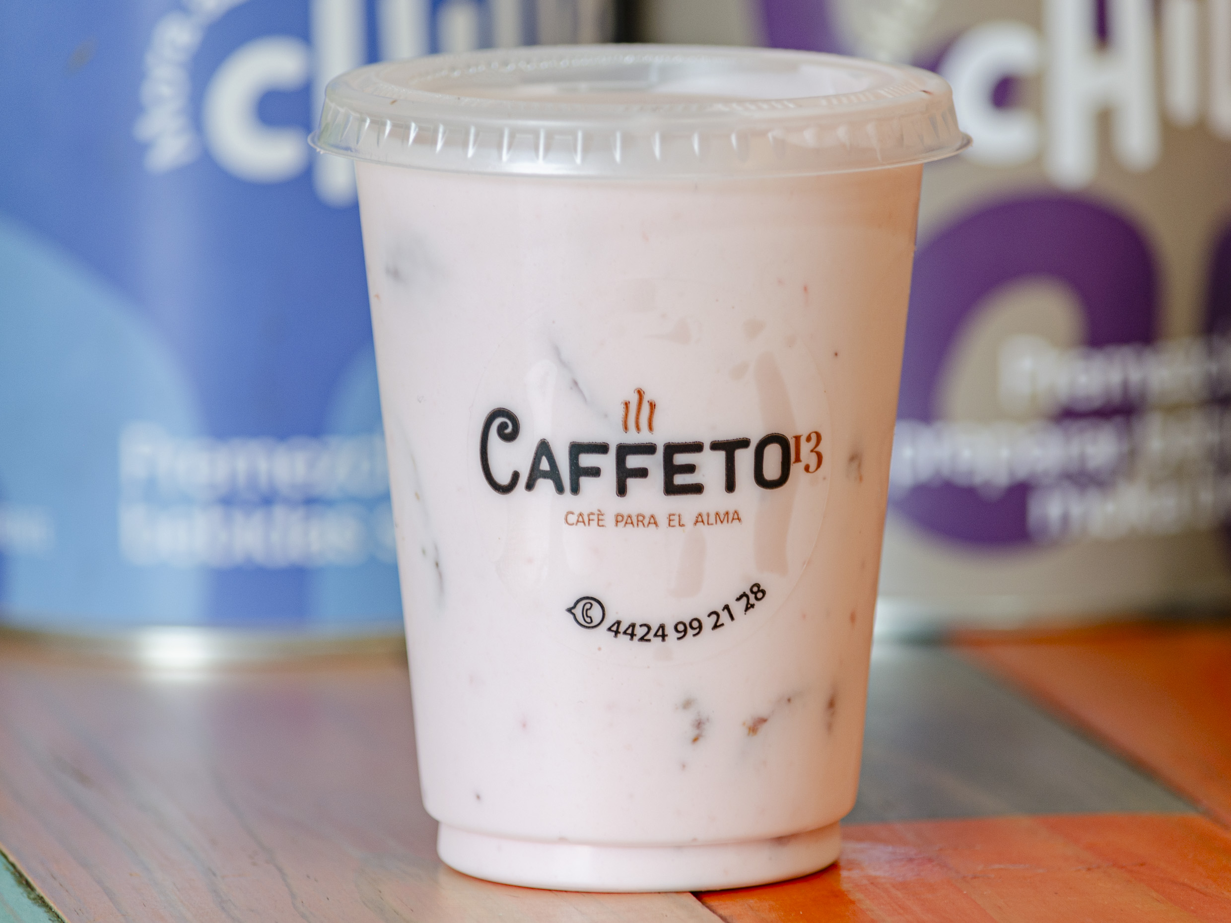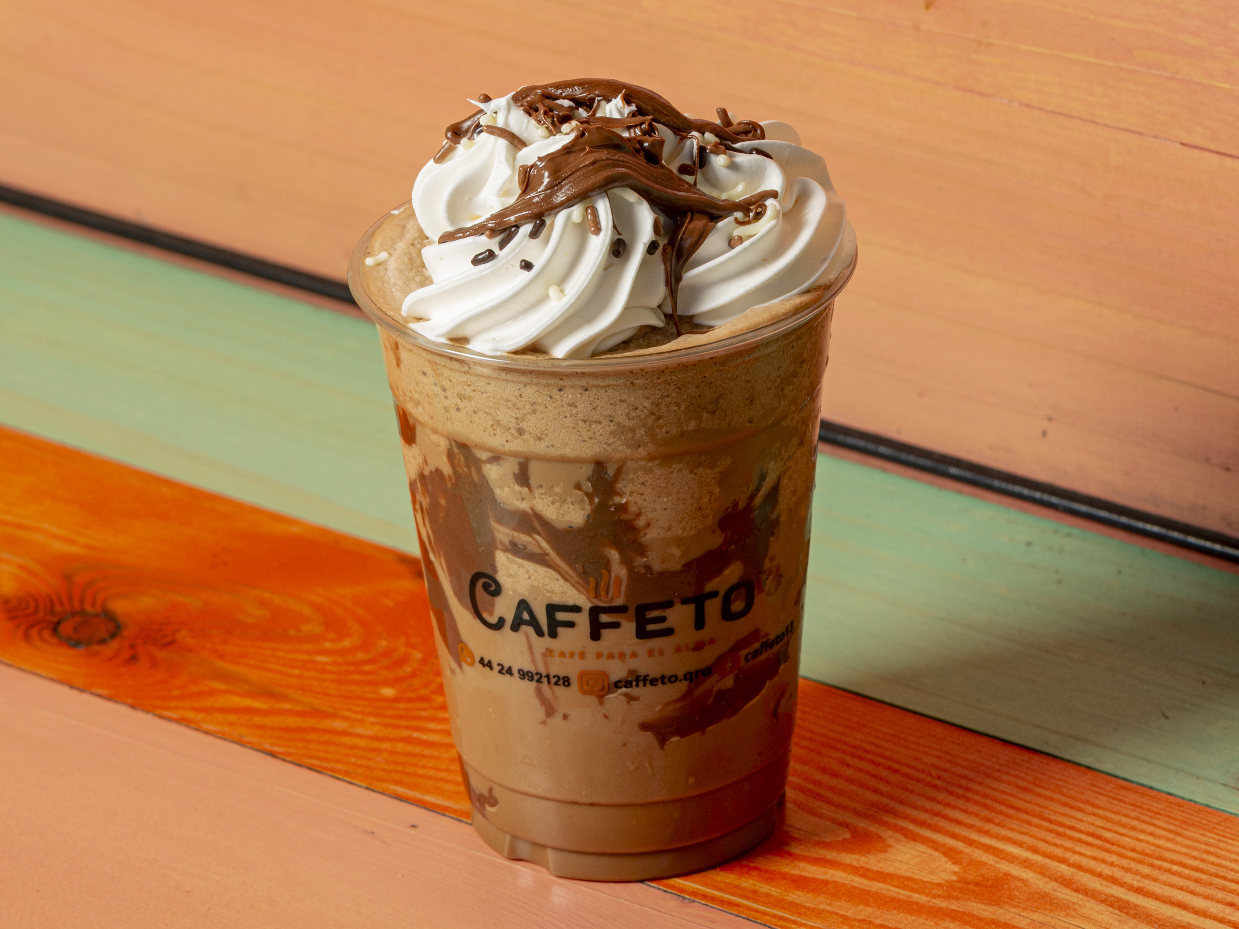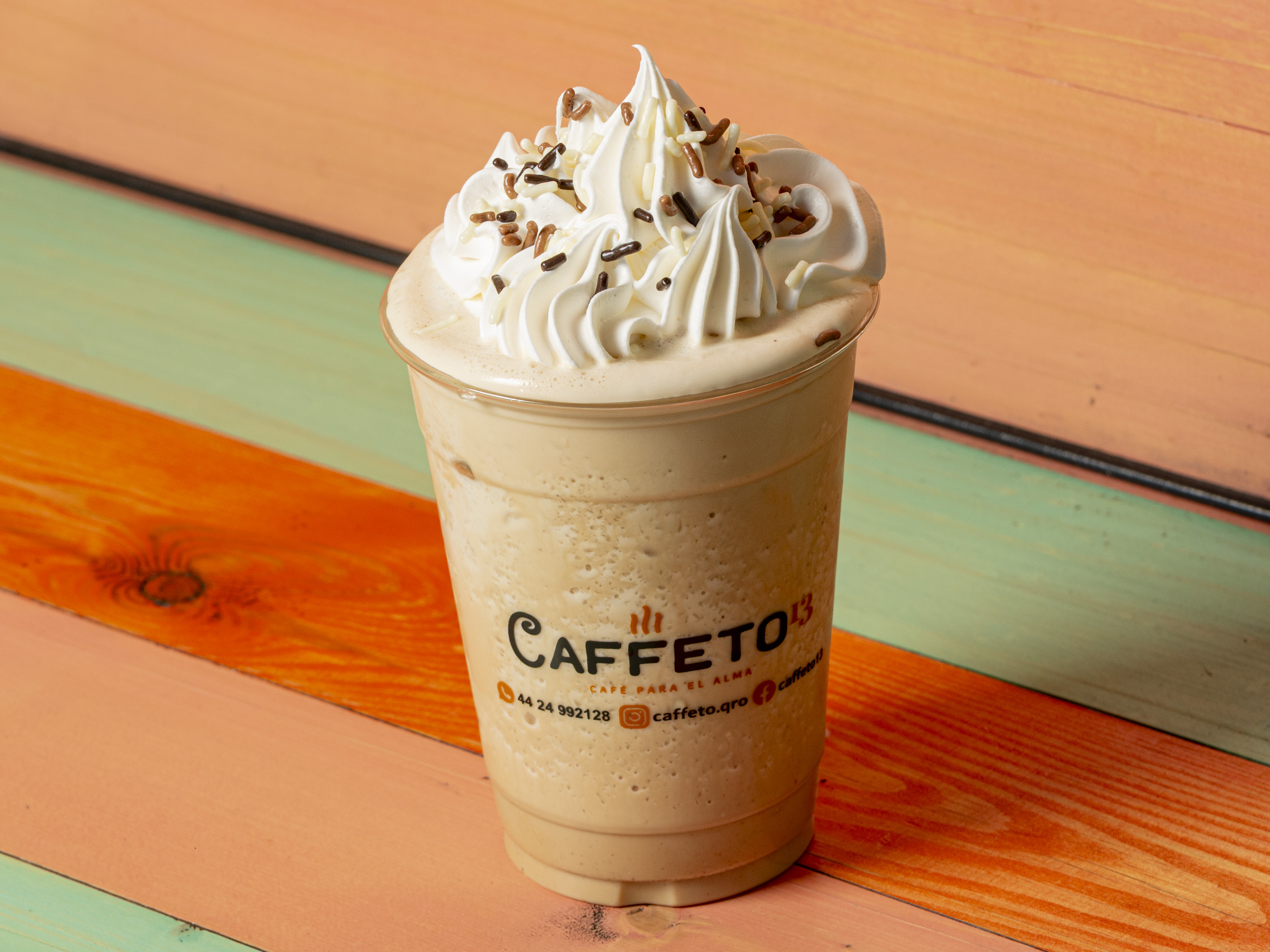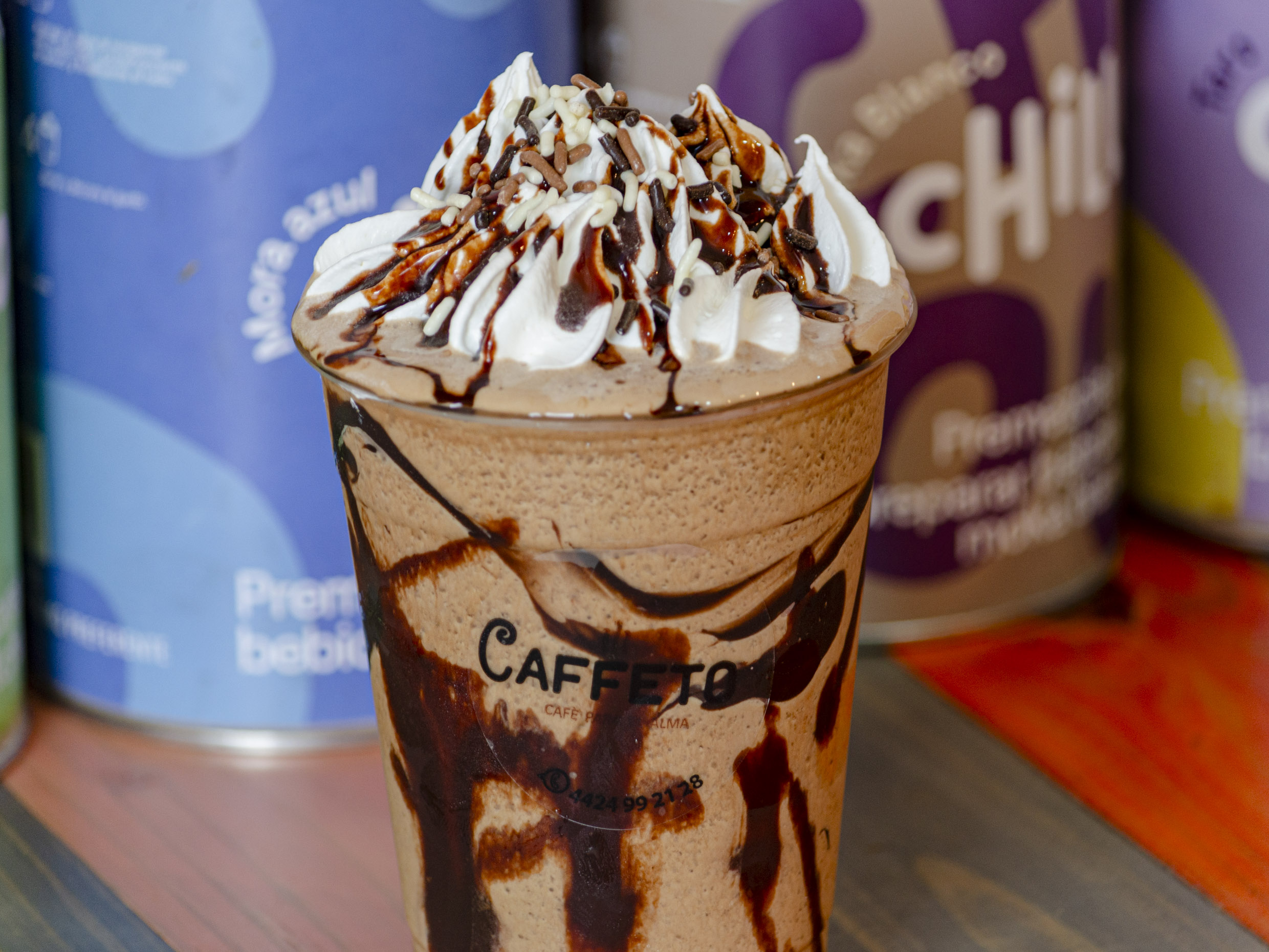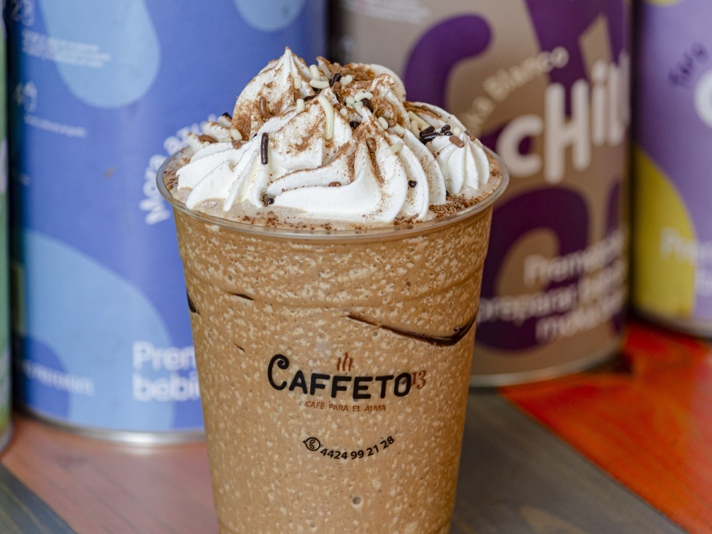 Bebida a base de café, leche evaporada, leche, hielos y chocolate abuelita en polvo