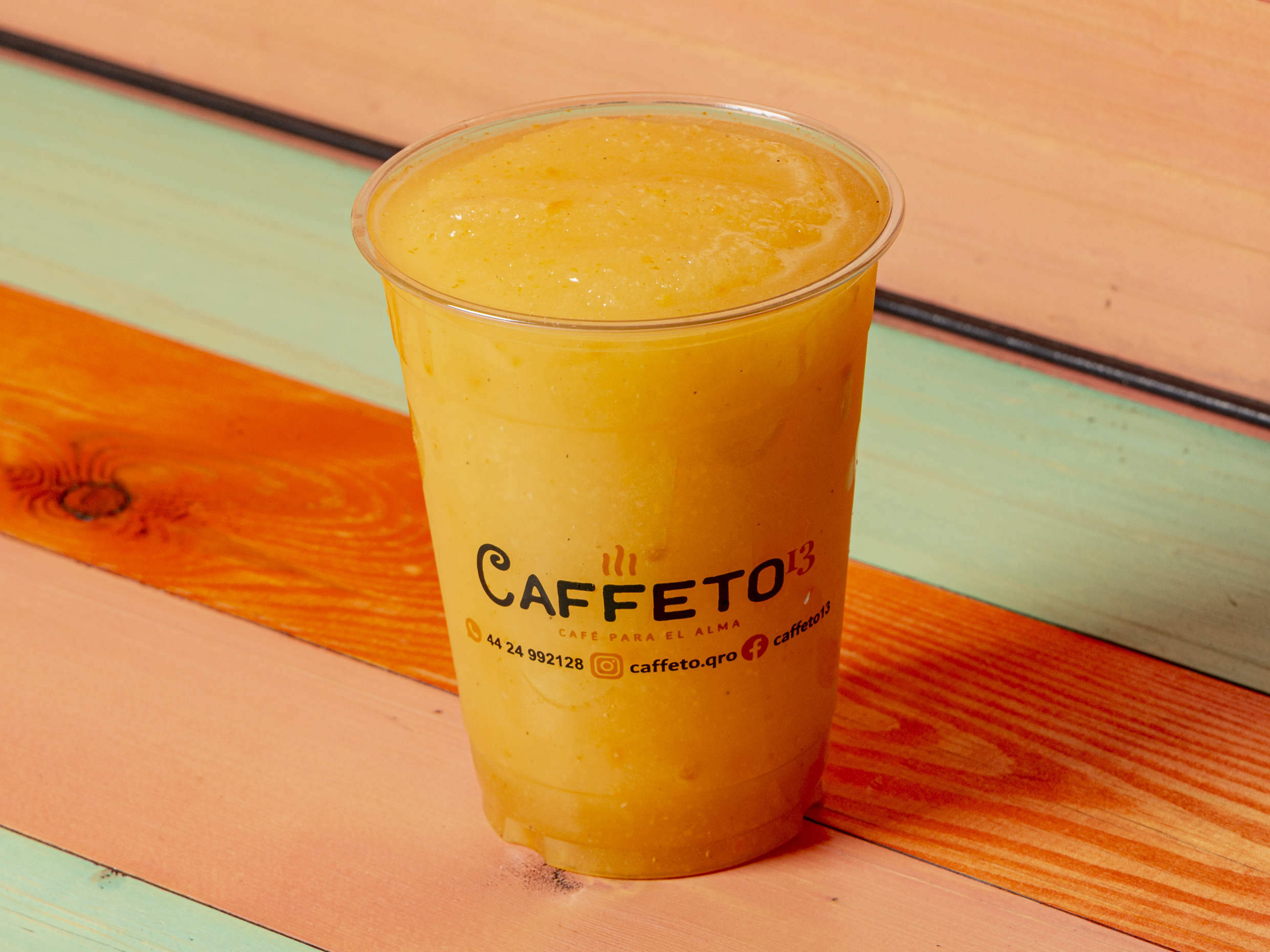 Bebida a base de agua, maracuya, mango y jelly de mango