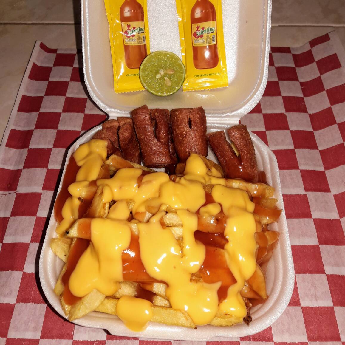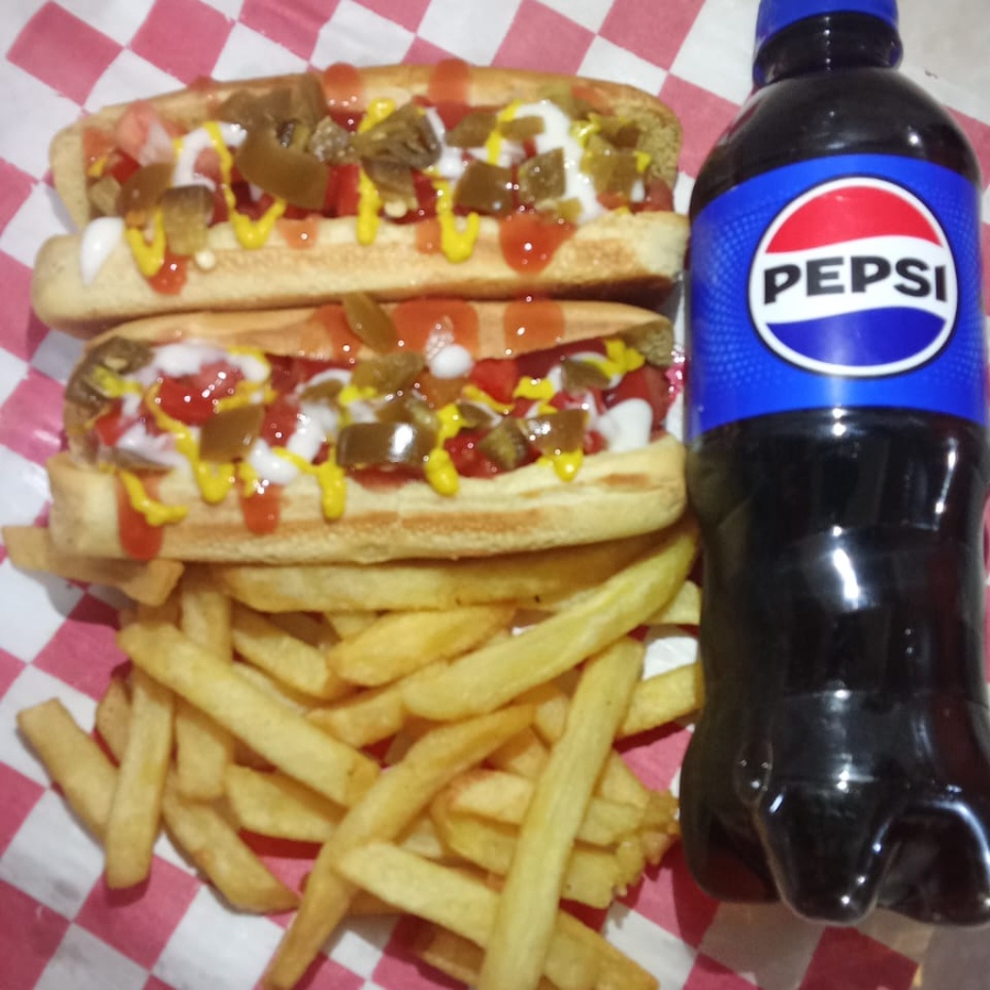 2 hot-dogs oaxaqueños, con papas, refresco 355ml.