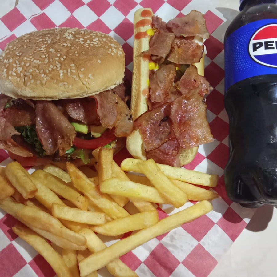 Hamburguesa Con Tocino*1 + Hot-Dog Con Tocino🌭🥓*1 + Papas a la Francesa🍟*1 + Refresco*1