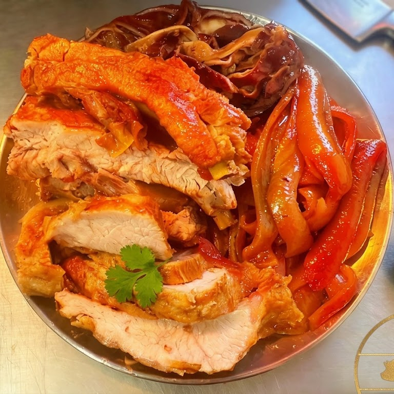 Porción de 750 g de carne de cerdo cocida lentamente en su propio jugo.