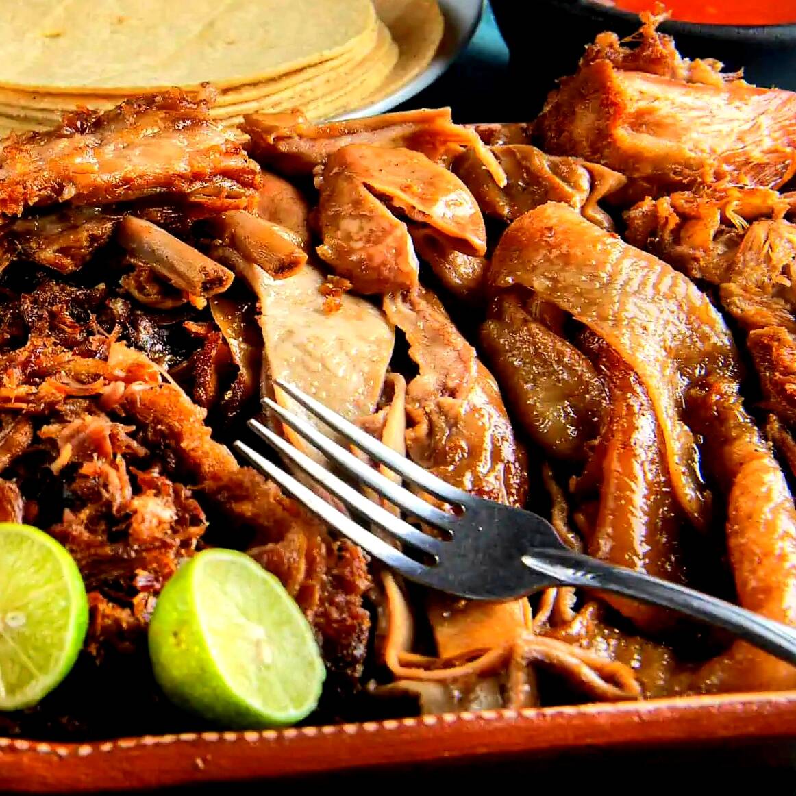 Maciza, cuerito o surtida acompañadas de tortillas ,pico de gallo ,salsa picante y chiles en vinagre