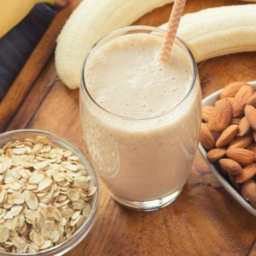 Leche entera, plátano, chocolate, avena o amaranto, vainilla y canela.