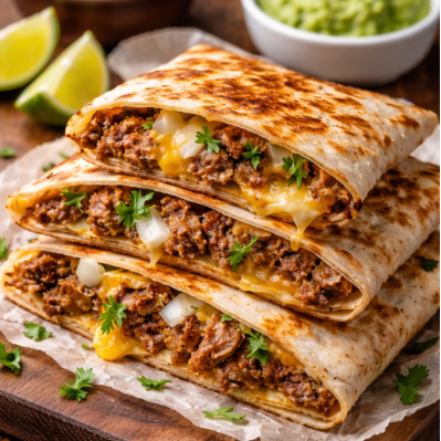Deliciosa Quesabirria con queso gratinado y birria de Res