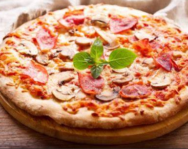 Champiñón, cebolla, pimiento verde y aceituna negra.