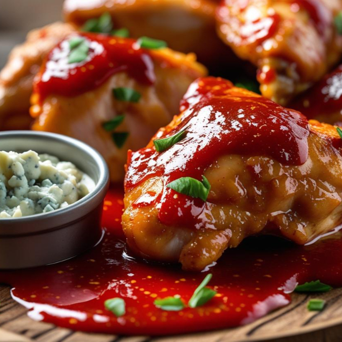 Boneless bañados en salsa pucante infenal + dip blue chesse