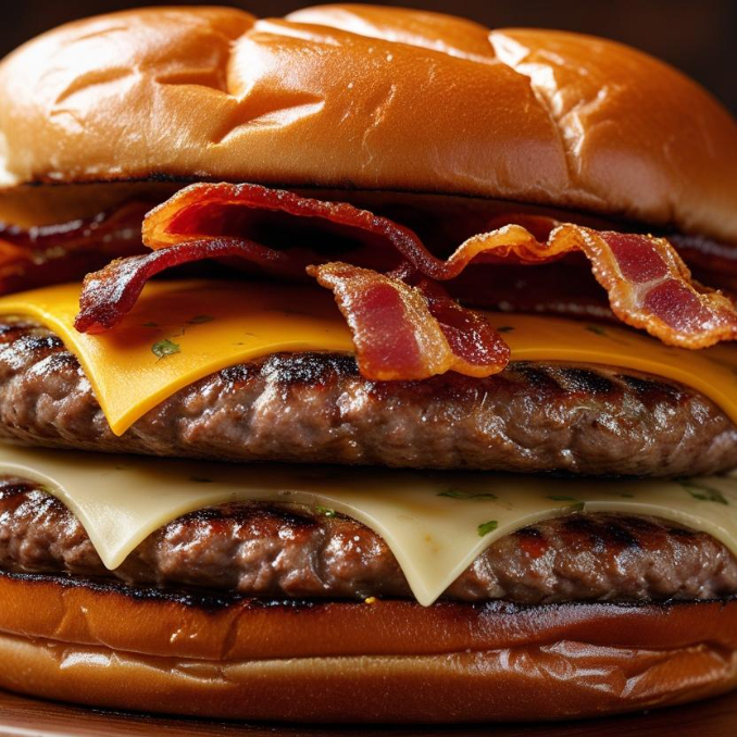 Doble carne, doble queso, baccon crujiente, pan brioche.
