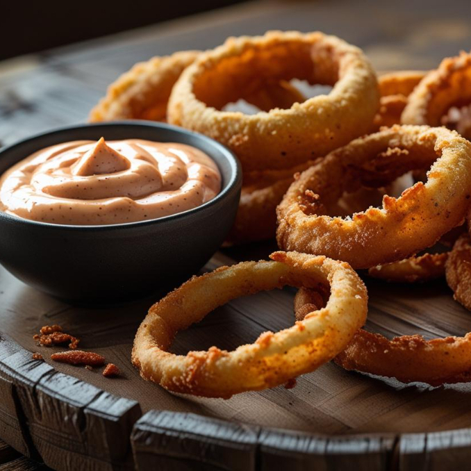 8 PZ aros de cebolla extra crujientes+ mayo chipotle
