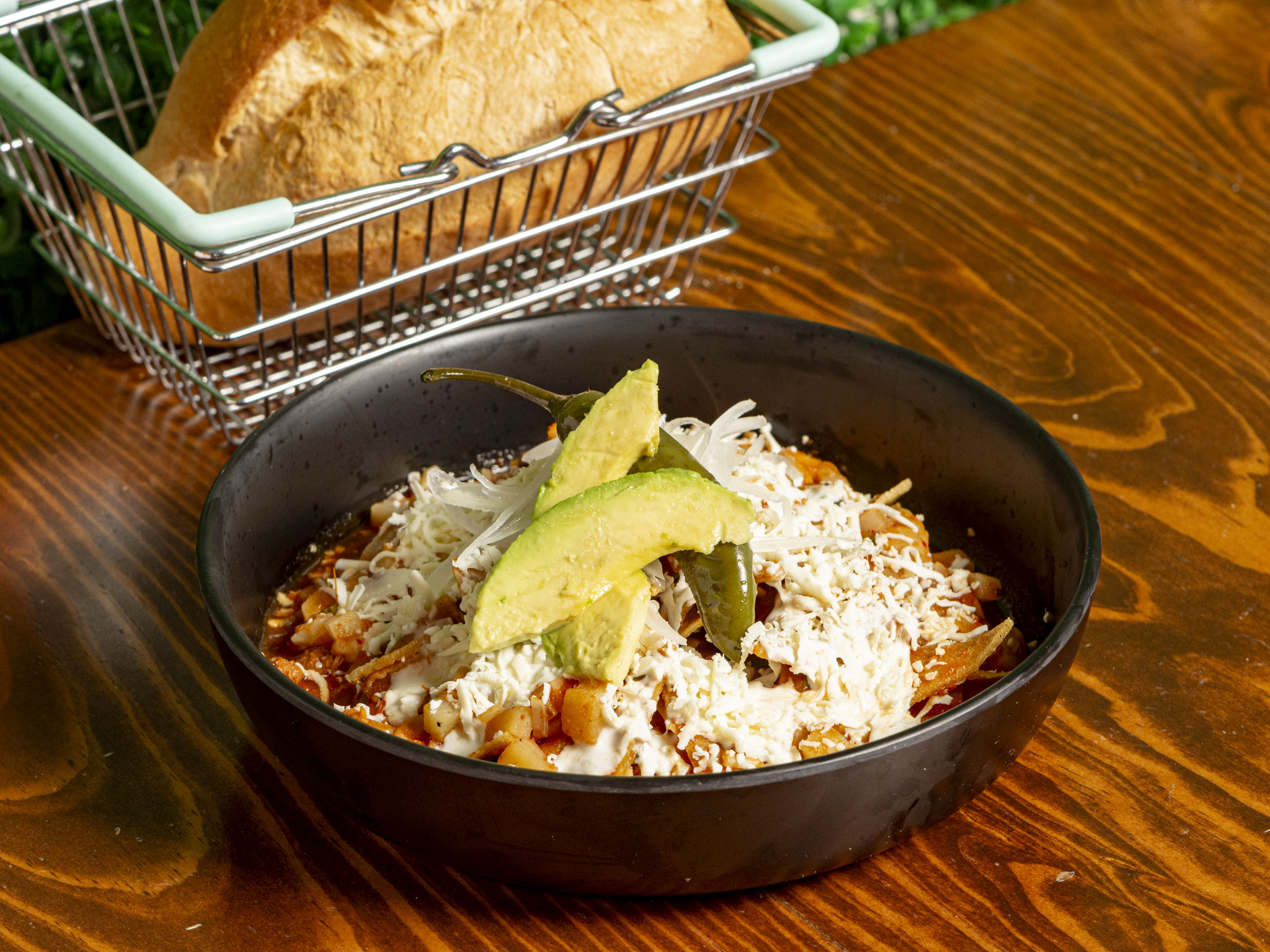 CHILAQUILES CON QUESO + AGUA JAMIACA
