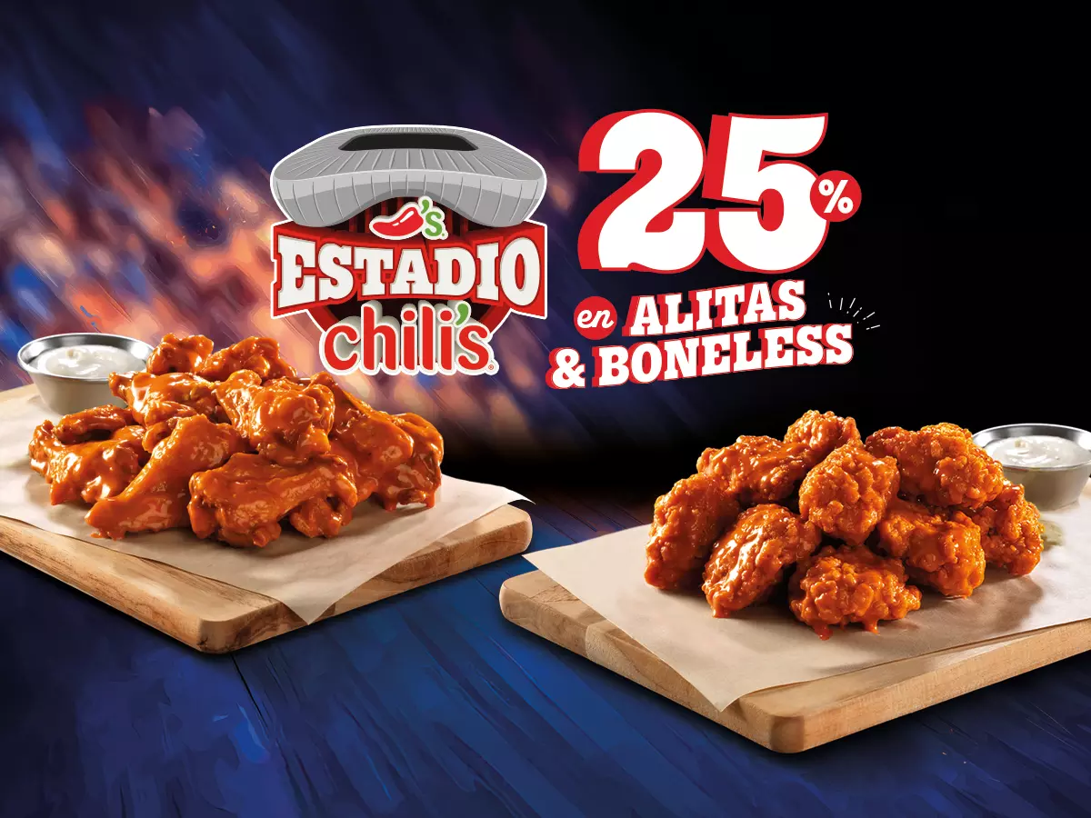 Disfruta el estadio Chili´s con este combo 10 Alitas y gratis 5 Alitas + 1 Coca-Cola