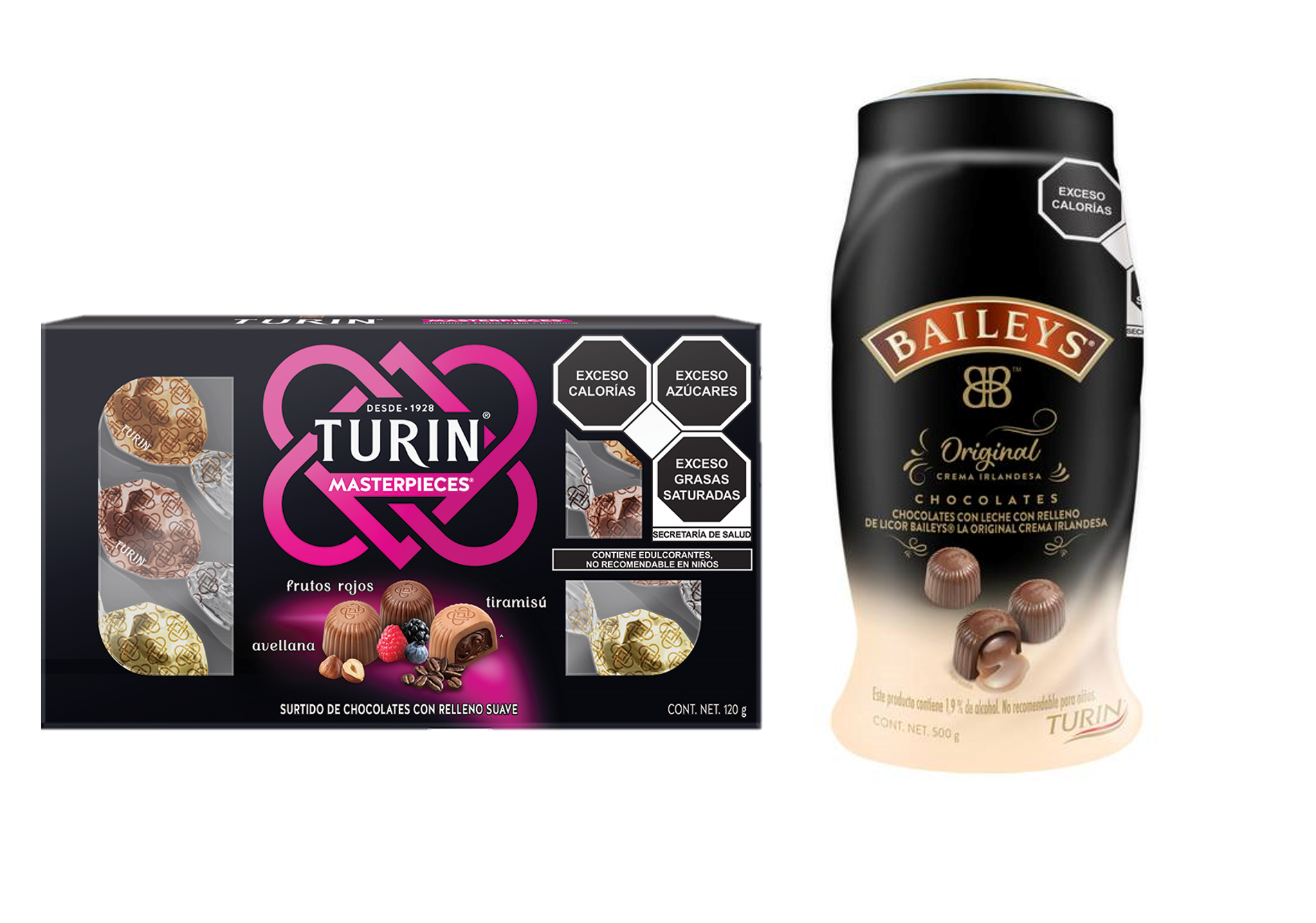 Turin Chocolates BAILEYS Original Vitrolero 500 G*1 + Turin Chocolates José Cuervo Tubo 180 G*1 + Turin Chocolates Carajillo Estuche 120 G*1